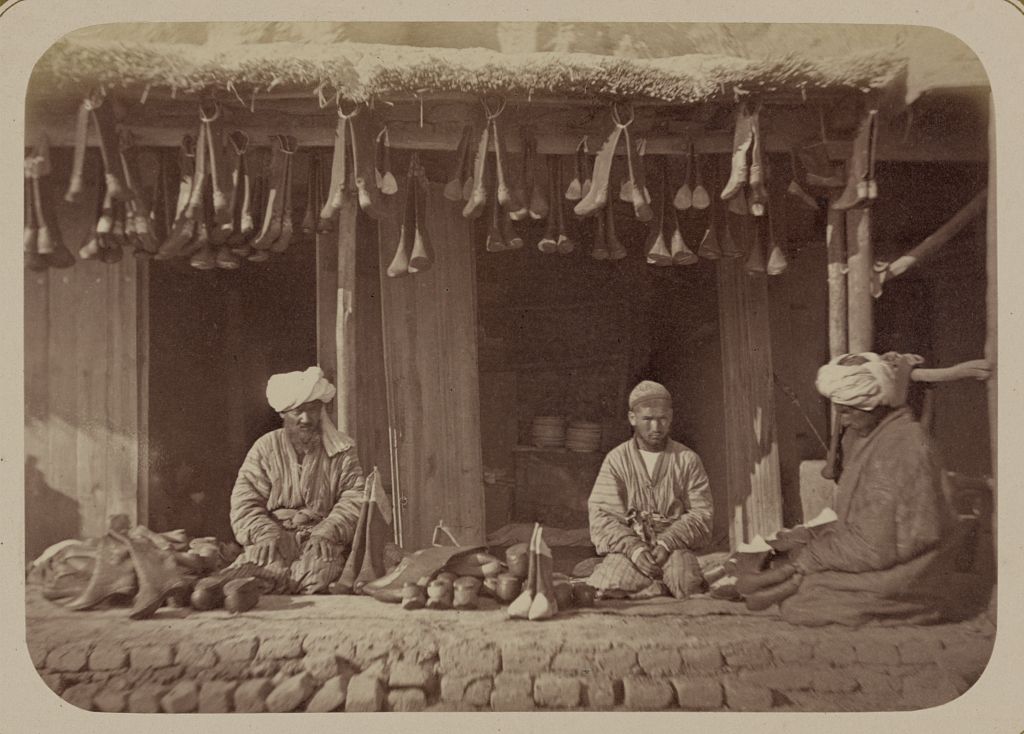 «Весь Аулие-Ата застроен лавками, — продолжает описание автор, — так что, строго говоря, базар, крытый только кое-где, тянется по всему городу, заключенному в ограде (то есть, в пределах городской стены). Наружный вид базара не совершенно схож с базаром Чимкента. Там вся деятельность сосредоточена в лавках, продающих всякую всячину. Здесь в лавках небольшое движение, зато все улицы между лавками запружены верховыми киргизами и пригнанными ими баранами. Торговля скотом, покупаемым и на деньги, и на товары, составляет характеристическую черту Аулие-Ата. Пригоняя в город несколько баранов, киргиз покупает материи на платье и все, что ему нужно. Вследствие того, торговля Аулие-Ата ведется преимущественно с киргизами, и вследствие того же здесь нужен такой большой базар».